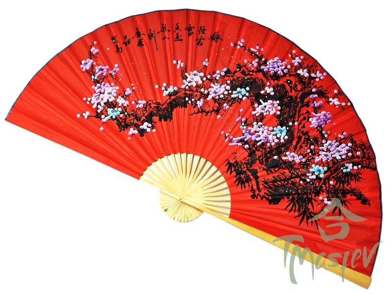 «Цветущая сакура» - большой настенный тканевый веер на бамбуковой основе. С обратной стороны ткань проклеена тонким картоном для того, чтобы веер лучше держал форму. Веер украшает изображение цветущей сакуры. В Китае сакура – символ женского начала, женской красоты и любви на языке цветов.